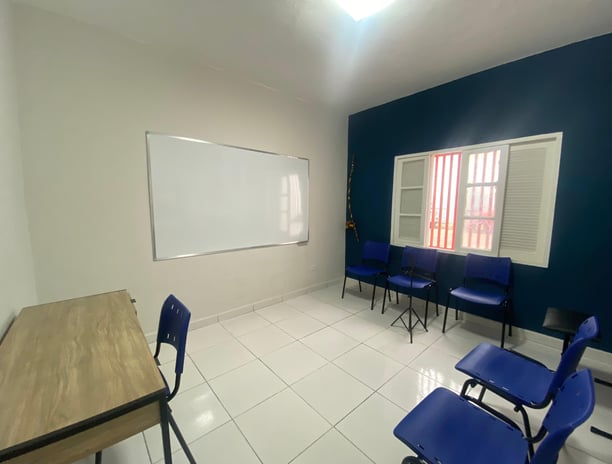Nossas salas são especialmente montadas para as aulas, pensando em iluminação, acústica e conforto dos nossos alunos.